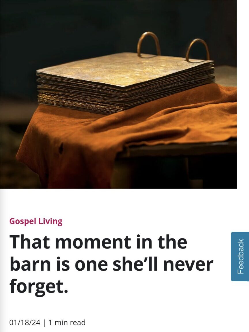 The church published a Gospel Living article on its website with a title referring to a memorable “moment in the barn” as one that “she” would never forget. The title is full of intrigue and leads a reader to wonder who this she is, and what this unforgettable moment was. Mary Whitmer in the Barn …